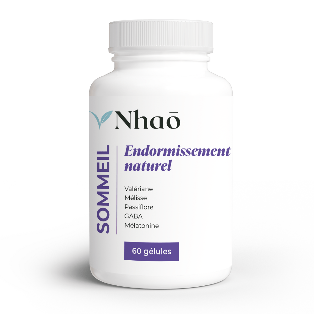 NHAO Sommeil est une formule naturelle complète à base de valériane, mélisse, passiflore, GABA et mélatonine, pour favoriser l’endormissement sans accoutumance.